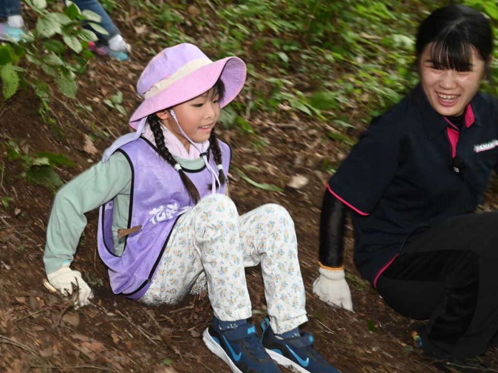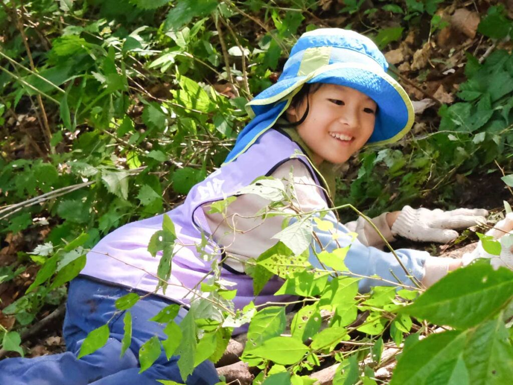 木登り、泥だんご作り、穴掘り…。山の斜面は天然の巨大すべり台に!