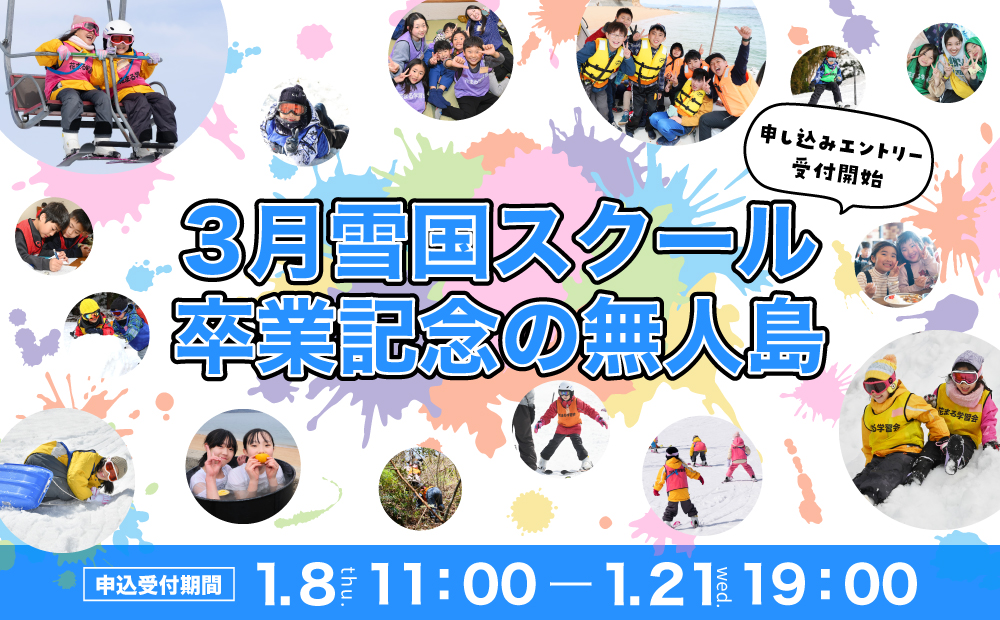 2026.01.08 3月雪国スクール/卒業記念の無人島申し込みエントリー受付はこちらから